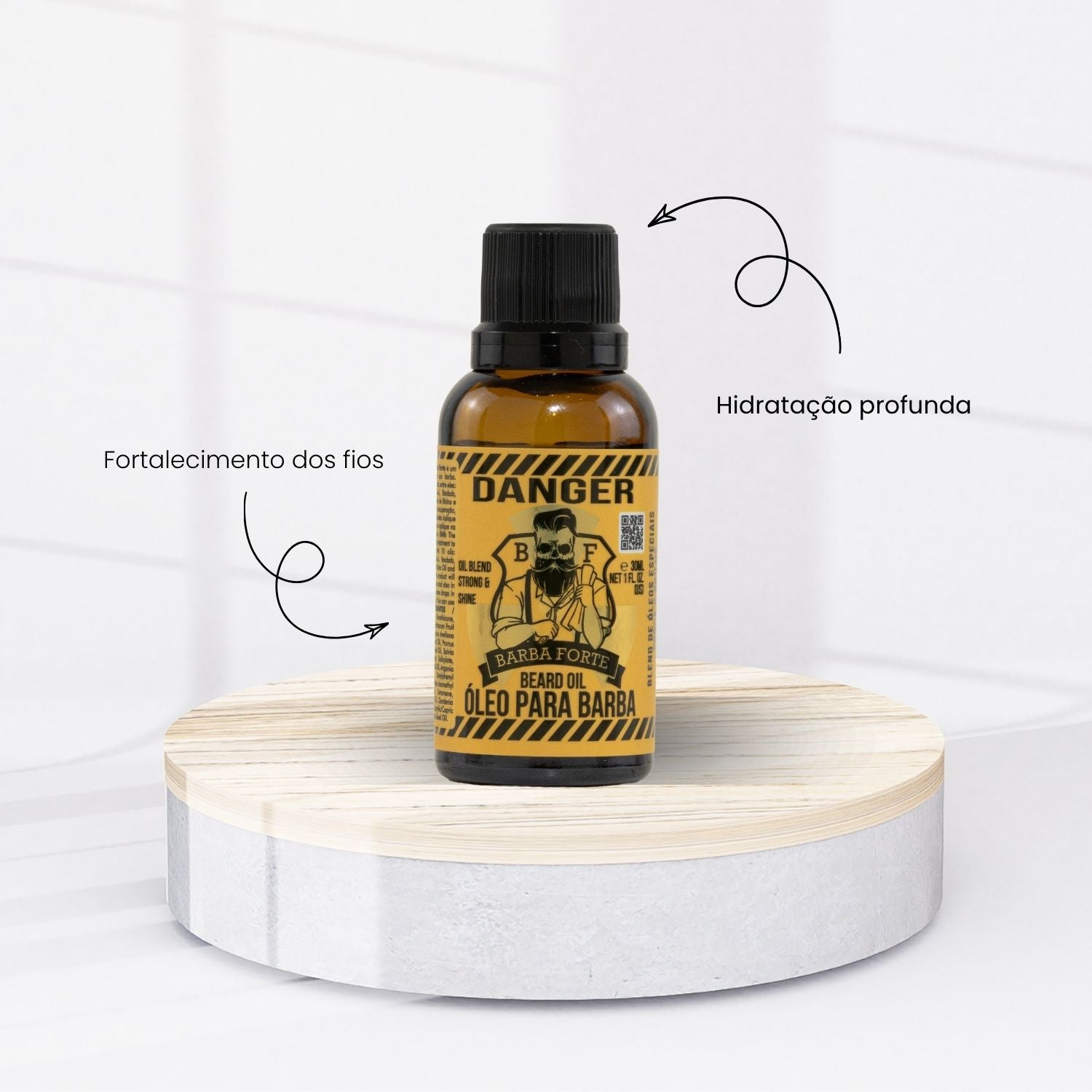 O Barba Forte Danger Óleo Hidratação e Brilho 30 ml foi desenvolvido para hidratar, nutrir e alinhar os fios da barba e do cabelo, proporcionando um toque sedoso e brilho saudável. Sua fórmula leve e de rápida absorção combate o ressecamento, ajuda a controlar o frizz e facilita a finalização do visual. Ideal para uso diário, garante fios mais disciplinados, macios e com aparência saudável.
