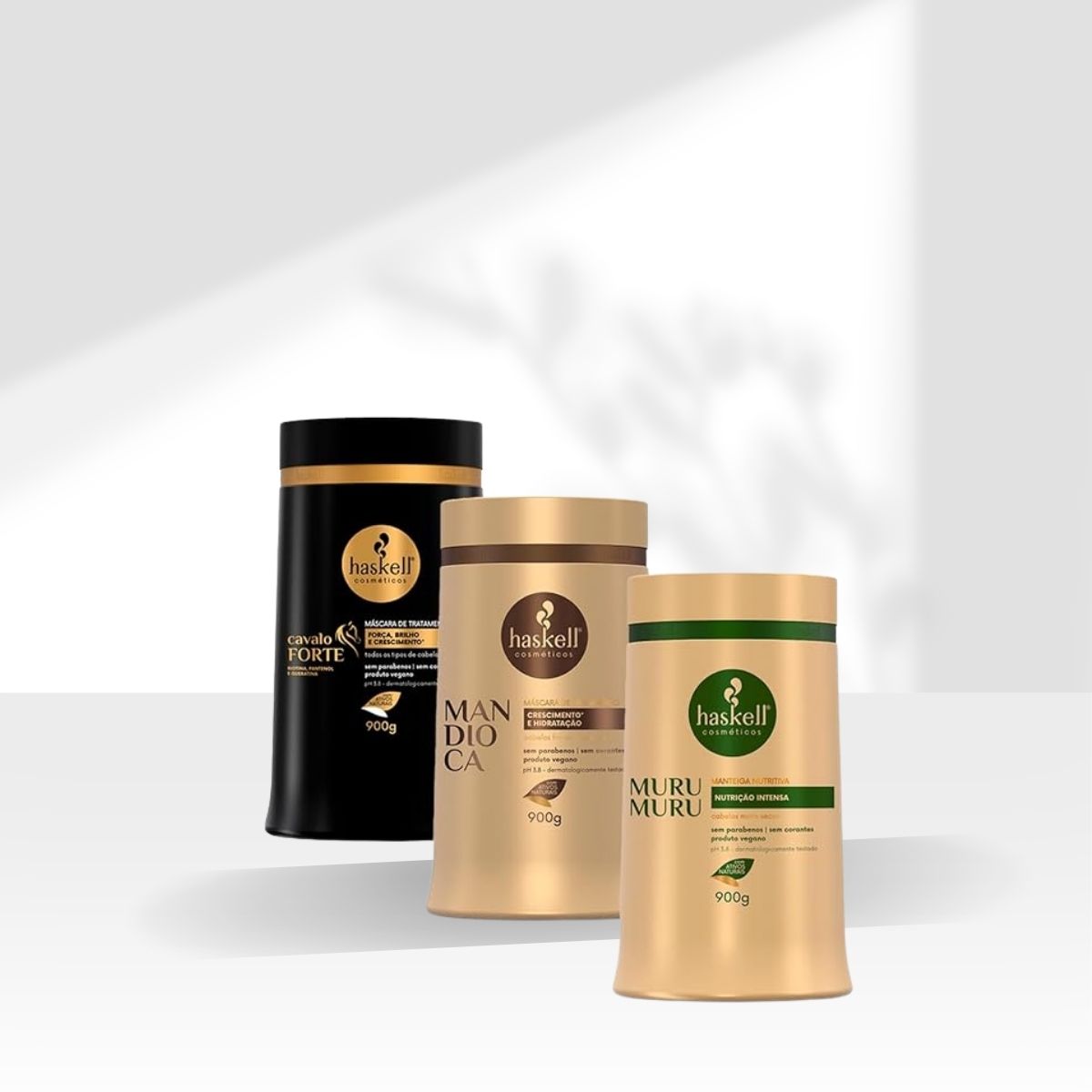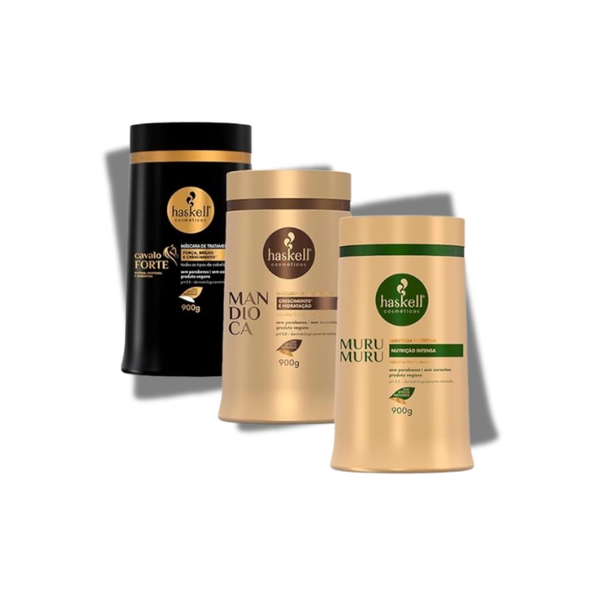 O Cronograma Haskell Cabelo Forte Máscaras foi criado para proporcionar um tratamento completo aos fios, unindo hidratação, nutrição e reconstrução. As máscaras Muru Muru, Cavalo Forte e Mandioca atuam de forma complementar, devolvendo força, brilho e vitalidade ao cabelo. Ideal para restaurar a saúde capilar e manter os fios resistentes e macios em todas as etapas do cronograma.