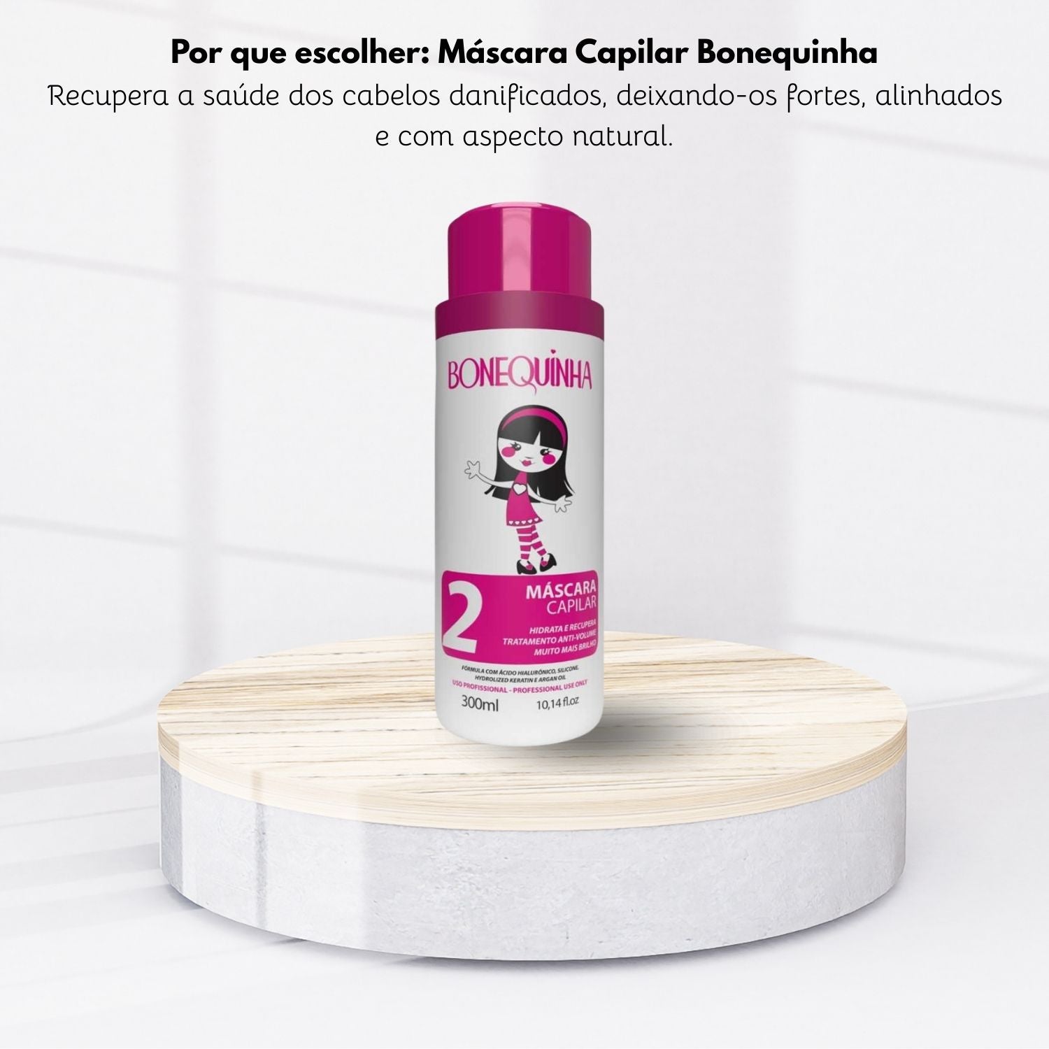 Bonequinha Escandalosa possui alto rendimento e aplicação rápida. O resultado é um cabelo liso, mais resistente, brilho e balanço.