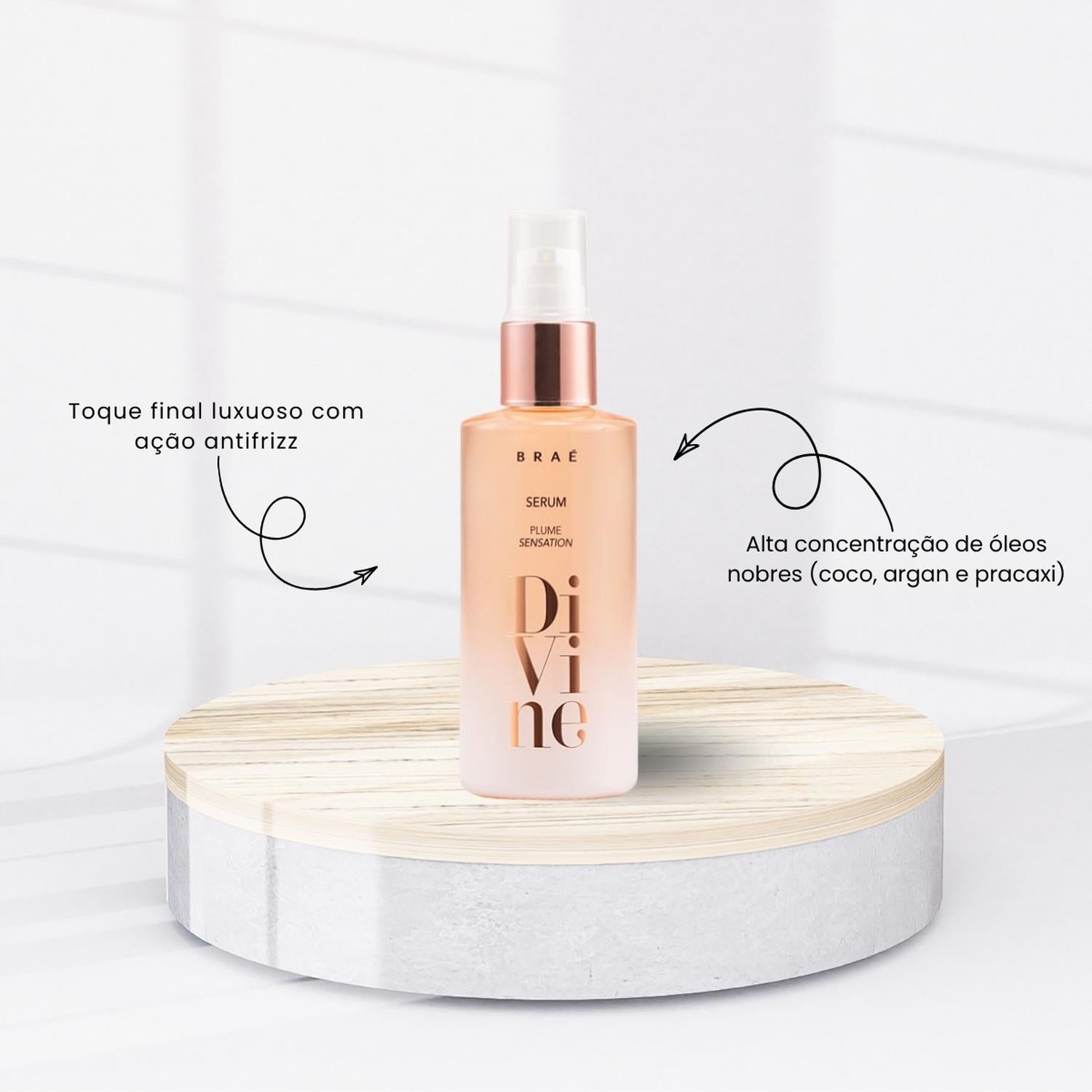 Sérum Plume Sensation: Aplique nas pontas secas ou úmidas para finalizar com brilho e maciez.