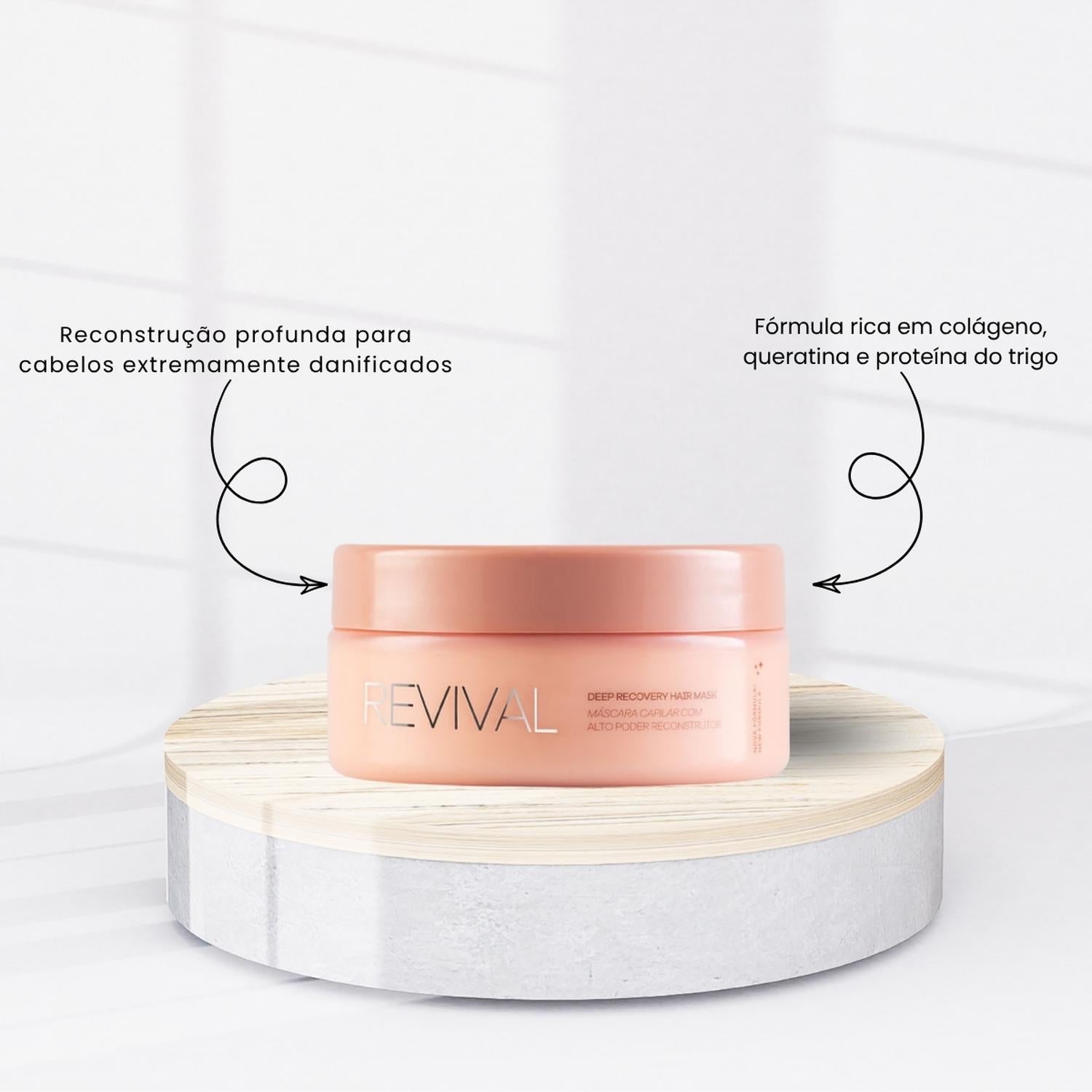 Utilize a máscara de reconstrução (Revival) 1 a 2 vezes por semana, intercalando com as máscaras de hidratação e proteção da cor para melhores resultados.