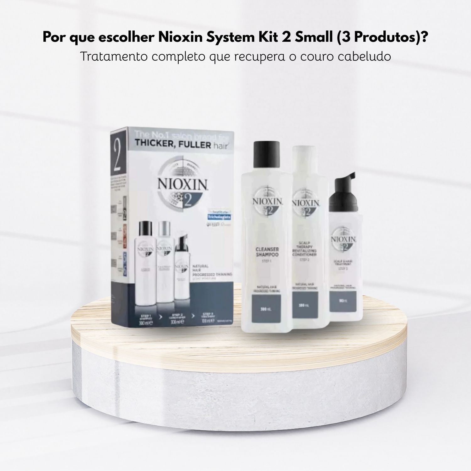 Apresentamos o Kit Nioxin System 2 Small, um poderoso tratamento desenvolvido especialmente para cabelos ralos naturais.