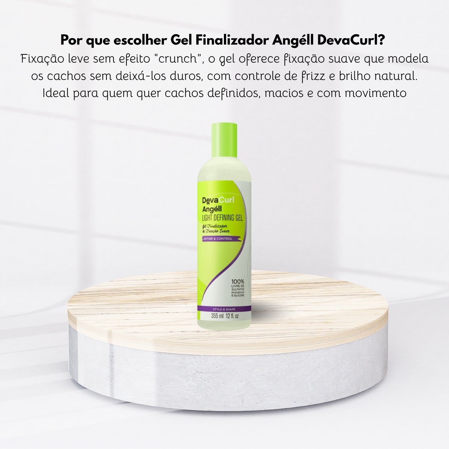 Leave-in em gel para cabelos cacheados, ondulados e crespos. Deva Curl Angéll auxilia na definição dos cachos enquanto elimina o frizz. Deixa os fios com aparência natural e saudável.