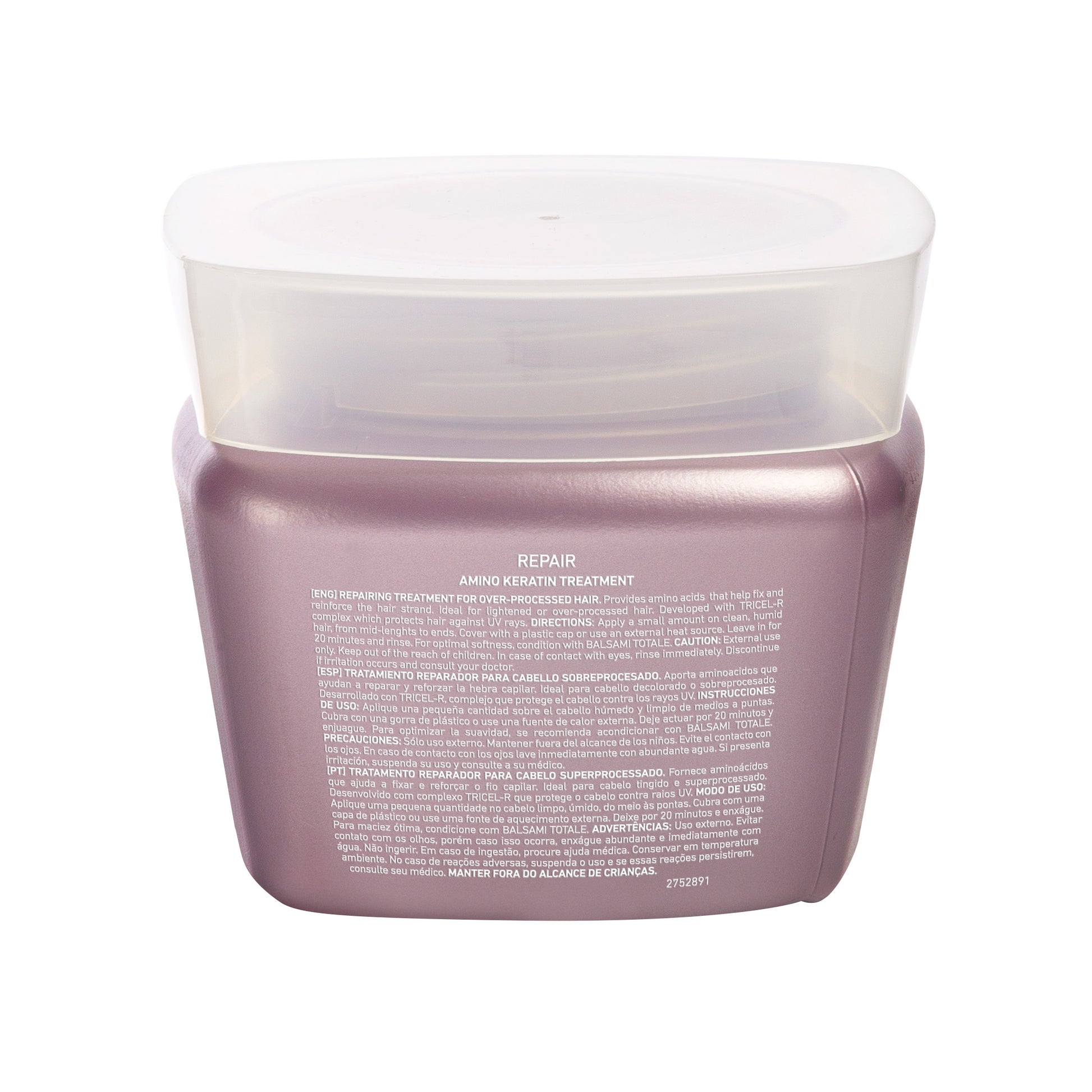 Devolve proteínas e aminoácidos que auxiliam na reparação e fortalecimento da fibra capilar. Ideal para cabelos descoloridos ou quimicamente processados.