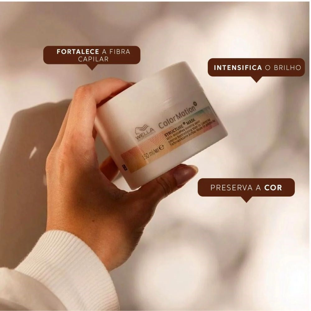 Máscara de tratamento reconstrutor para cabelos coloridos e danificados. Wella Professionals Color Motion+ traz força, brilho intenso e proteção da cor.?